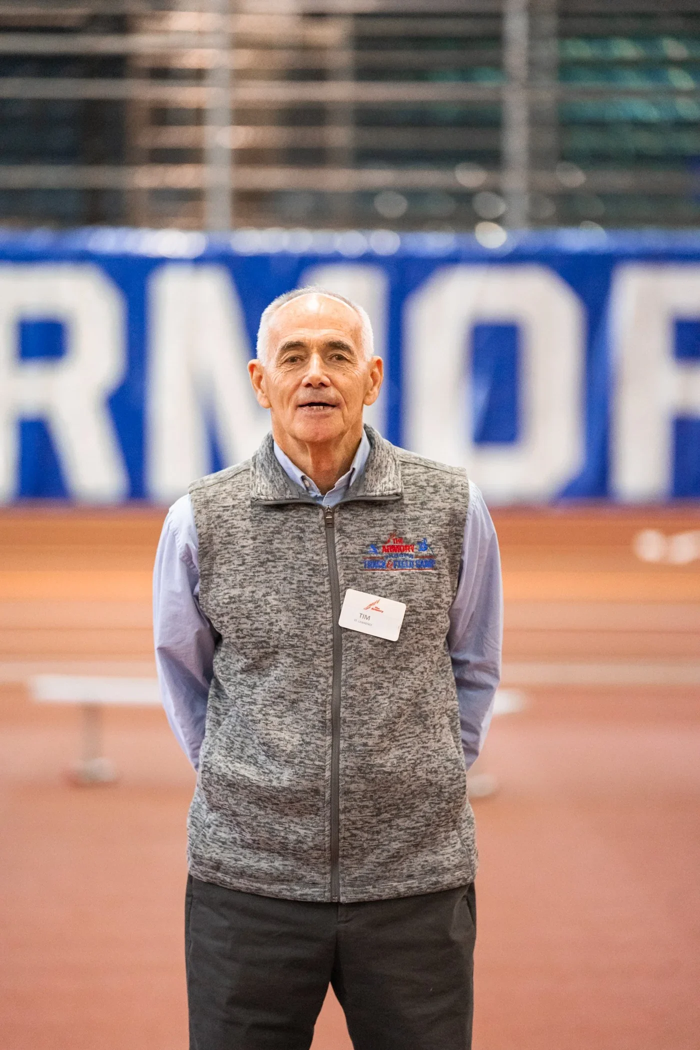 Tim is the founder of the acclaimed Hudson Valley Flying Circus Pole Vault Academy. He is one the top pole vault coaches in the country, guiding many athletes who have cleared over 16 feet. Tim is a member of The Armory’s Coaches Hall of Fame, and he is the namesake for the popular Coach Saint Invitational each December.